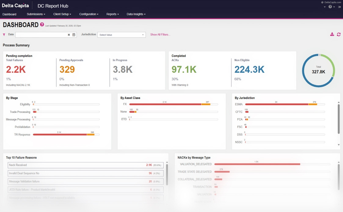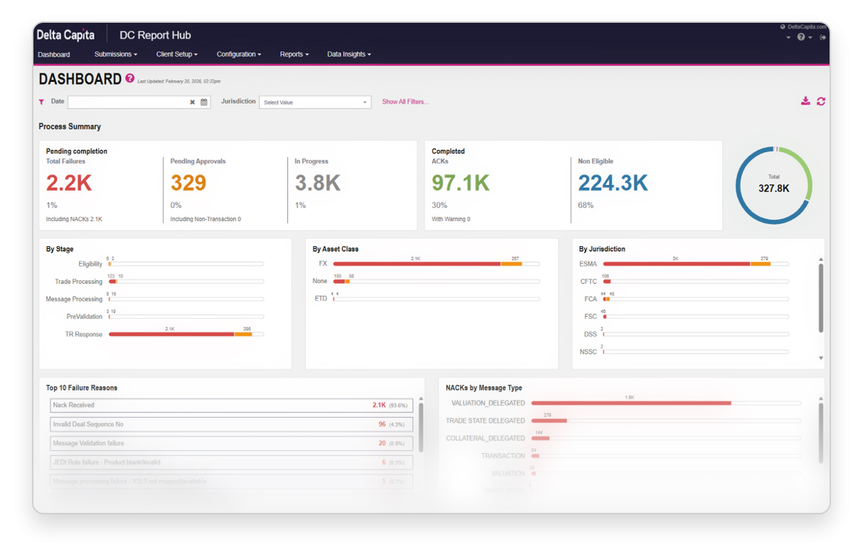 Monitor reporting performance in real time and stay fully informed of submission updates as they happen. Easily amend, correct, and resubmit exceptions - individually or in bulk - to maximise ACK rates before regulatory deadlines.